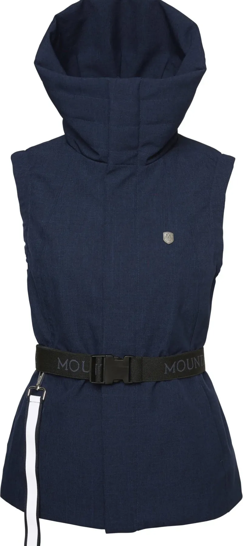 This padded vest is designed to be both functional and lightweight, providing protection from water and wind. It has a feminine fit and features reflective details, front pockets with zipper closures, and a protective high collar. Adorned with a detachable elastic belt complete with subtle Mountain Horse branding.