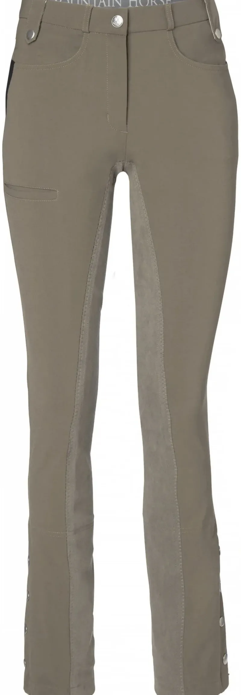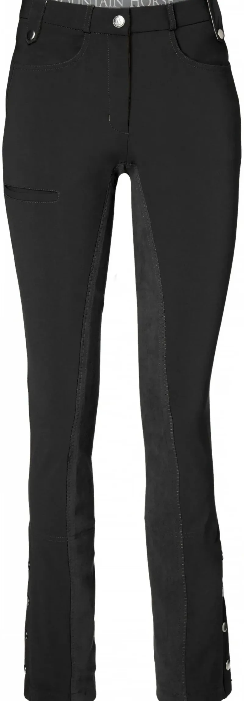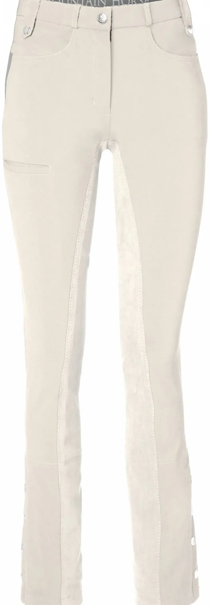 These ladies jodhpurs can be worn throughout the year and are made from a durable, flexible fabric that provides a comfortable fit. The full seat design offers a strong grip, and the leg includes zippers and foot straps for added convenience. Additionally, there is a pocket on the leg for storage.