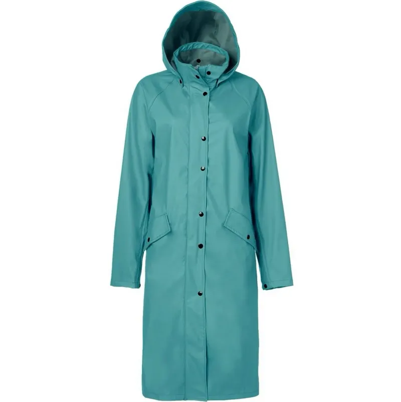 Long rain coat with welded seams. Two large front pockets and reflective MH logo at CB