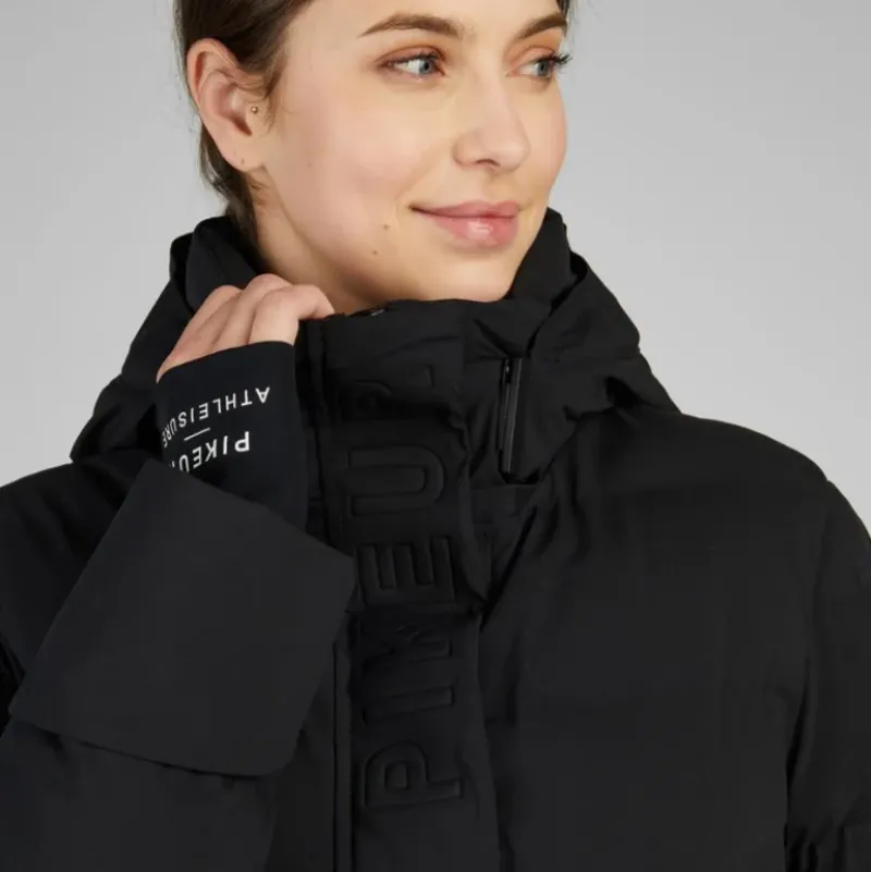 This coat is equipped with an adjustable hood featuring cord stoppers for a snug, customisable fit. The zippers are designed for smooth and effortless fastening, while turn-up cuffs with popper adjustments offer additional protection against the cold. Practicality is at the forefront with applied flap pockets that feature MAGNET CLICK closures, along with additional zip pockets on each side for secure storage.