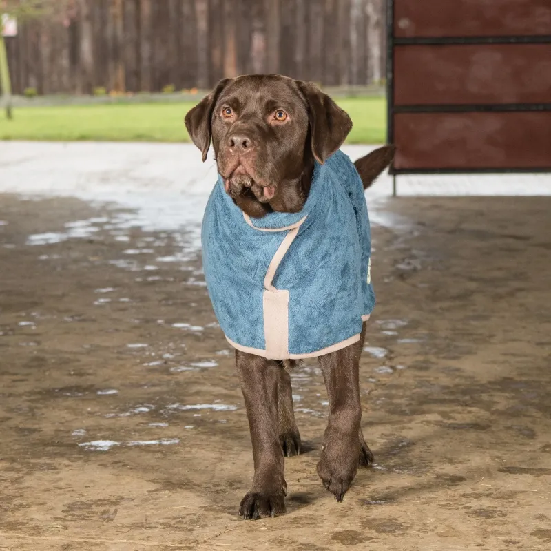 Simply slip a Ruff and Tumble Drying Coat over your wet dog, fasten around the belly and neck with easy-to-use Velcro, and your job is done. The drying robe dries a dog quicker than you can and does all the work for you.