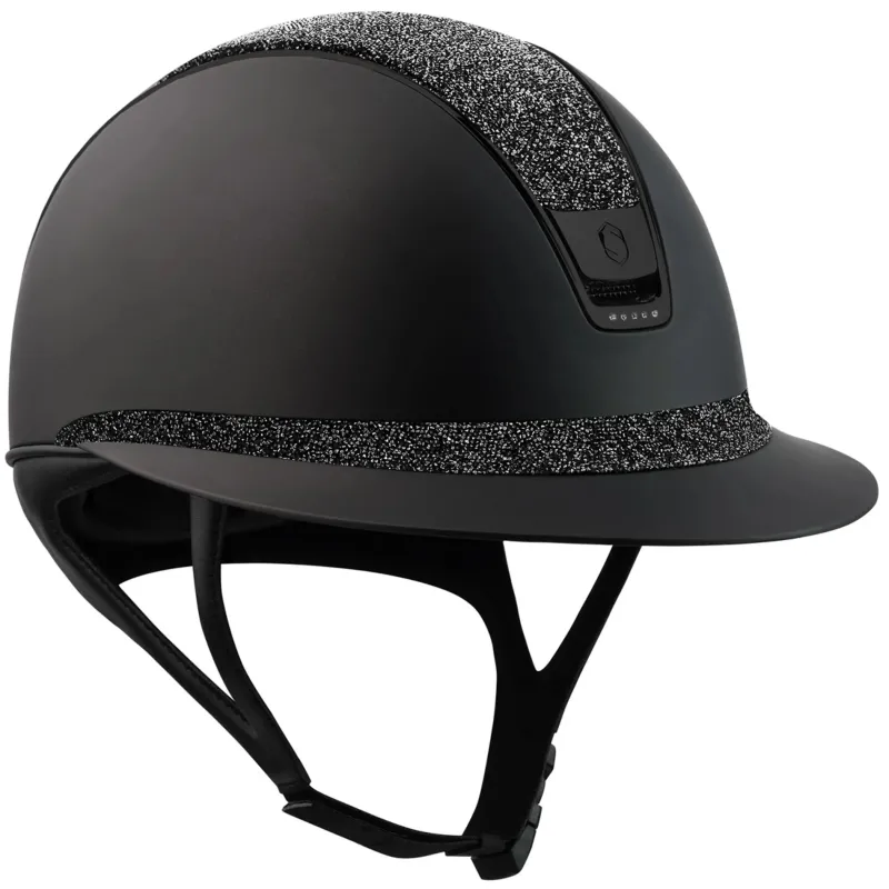 Exquisite materials – polycarbonate, a material found in top-tier motorgear – coupled with an anti-scratch paint give the Shadow Helmet unparalleled form and function. Embedded around the helmet’s contours, up to 300 Swarovski crystals provide a glimmering accent to the signature edging. Advanced ventilation optimizes airflow with this helmet’s 6-point system. Ergonomically designed, the integrated chinstrap offers the perfect fit for all hairdos, including a trainer’s bun. Memory foam ensures a consistent thickness over time, while a semi-rigid chinstrap prevents hazardous tipping. Inside, variable-density polystyrene diffuses energy from impacts, accompanied by a removable comfort foam secured via a reliable clip system. Finally, the foam can be washed at 30°C for a permanently clean and pleasant aroma.