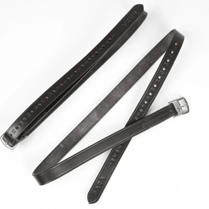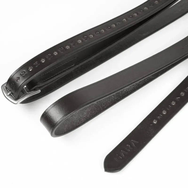 Velociti GARA stirrup leathers are nylon reinforced at the buckle for improved strength and durability. Stainless steel buckles.