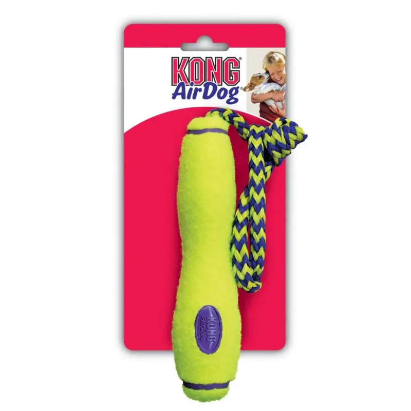 The KONG AirDog® Fetch Stick with Rope floats high on the water and comes with a high-quality throw rope. It’s made from our non-abrasive tennis ball material, which is gentle on teeth and gums. This toy is great for the dog that loves to swim and fetch. Find your dog’s favorite AirDog® shape and let the games begin.